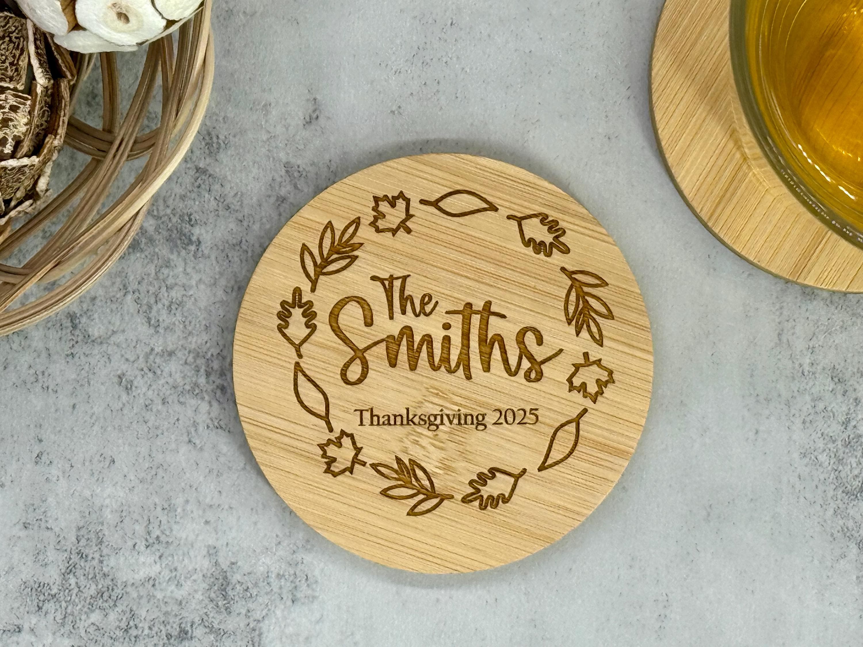 Personalized Thanksgiving Bamboo Coaster - Bamboo Coaster - Thanksgiving Gifts - Fall Decor - Thanksgiving Coaster - Personalized Gifts