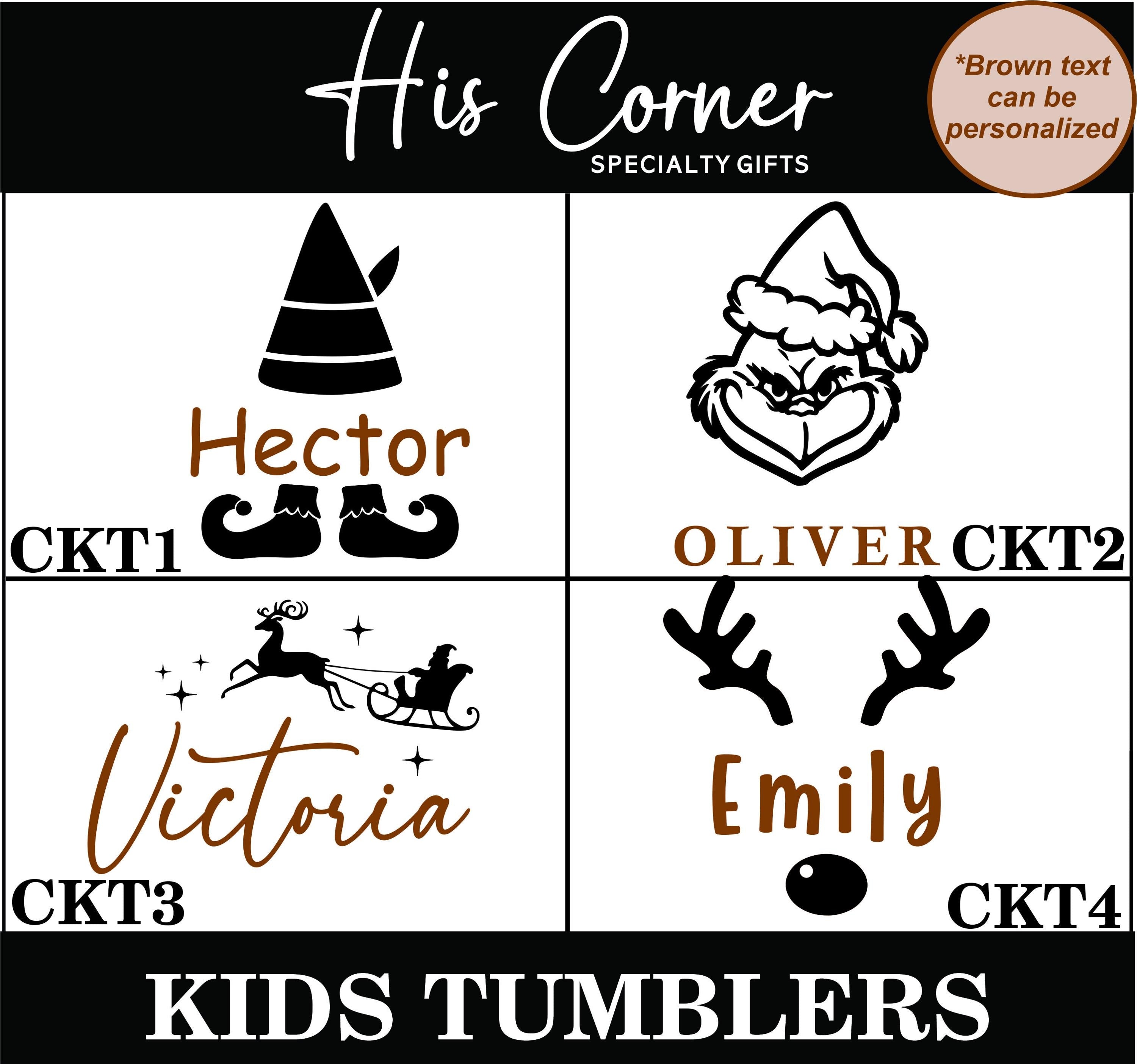 Personalized Kids Christmas Tumbler – Custom Name Cup – Holiday Gift or Stocking Stuffer – Reusable Holiday Cup – Gift for Children