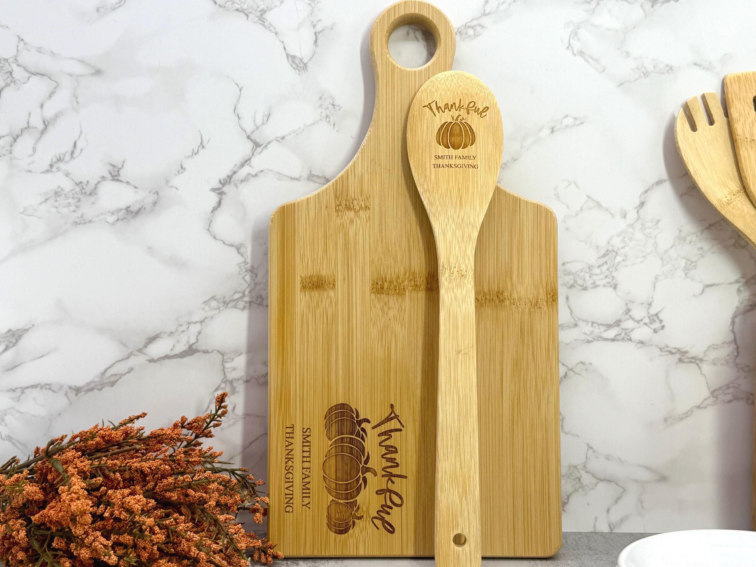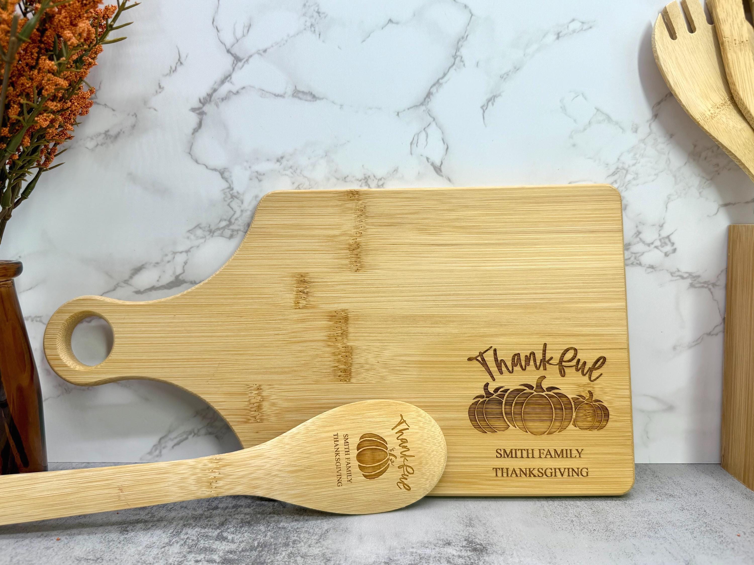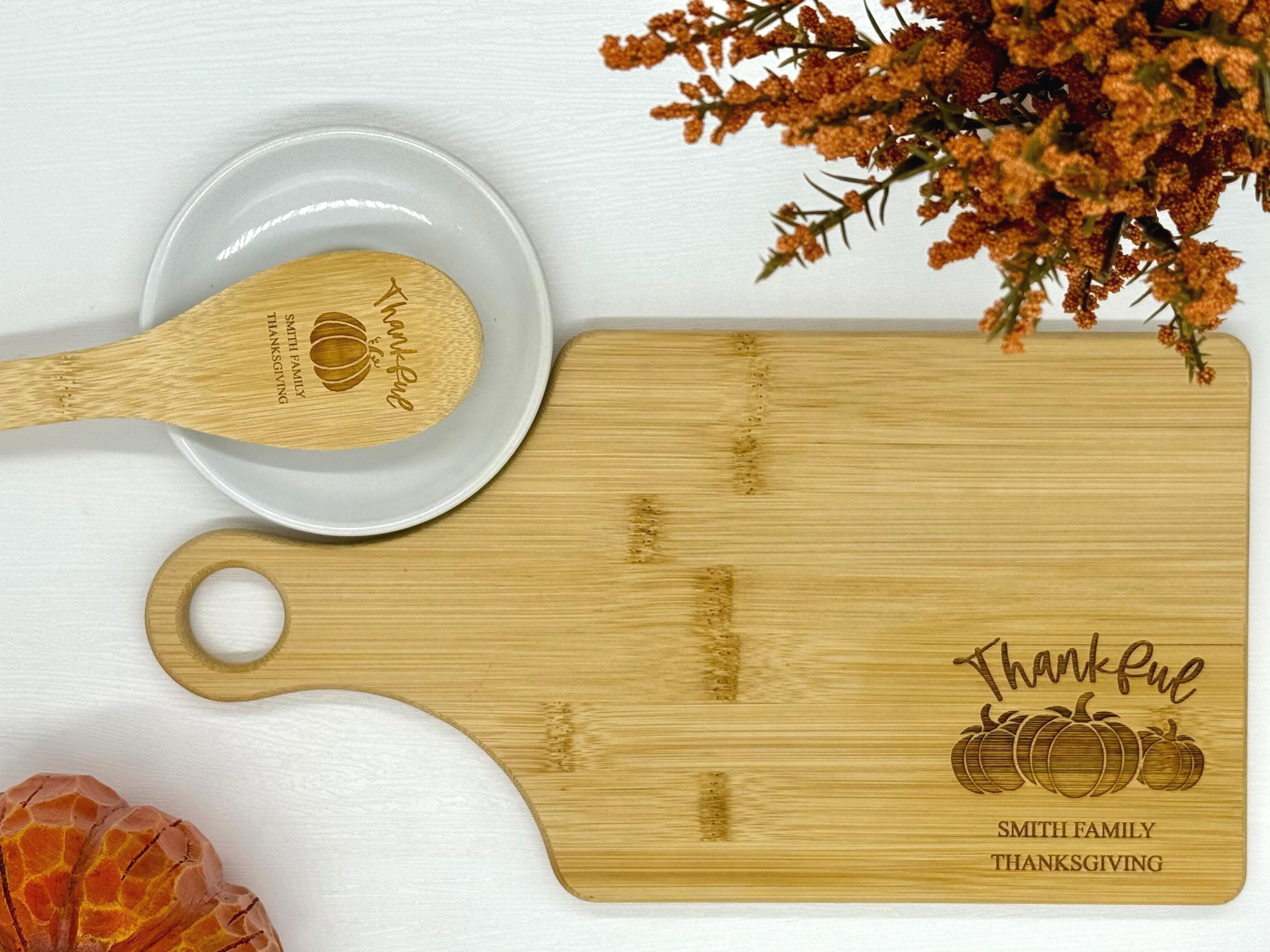 Personalized Thanksgiving Cutting Board & Spoon Set - Bamboo Cutting Board and Spoon - Thanksgiving Gifts - Holiday Gifts - Fall Decor